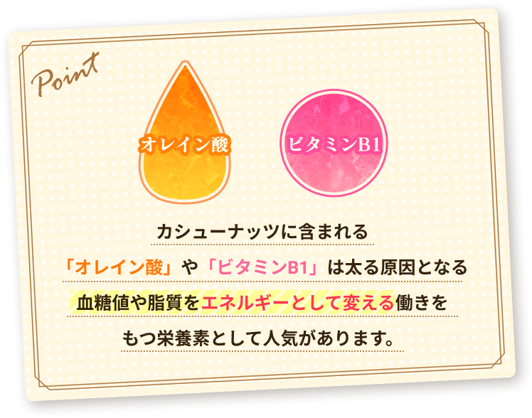 カシューナッツに含まれる「カリウム」は利尿作用があり、